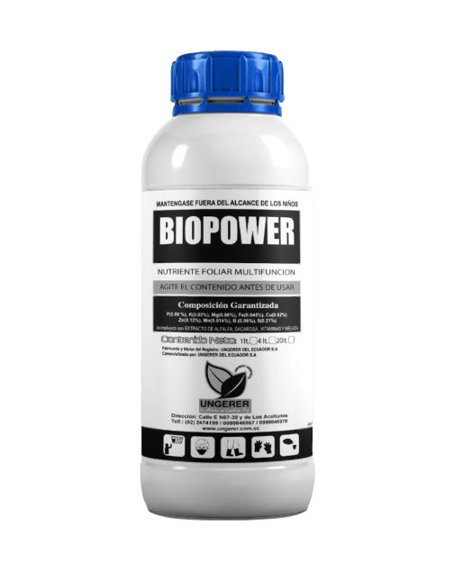 The BIOPOWER nutritive filter is obtained from the maturation of algae and vegetable extracts. It contains organic acids that facilitate the absorption of nutrients by the plant. Applying it in your crops will boost your production, the results of our customers endorse it.